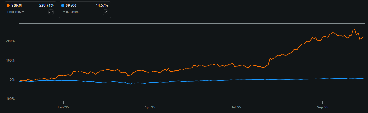 SSR Mining (SSRM) has been on an absolute tear this year. The stock is up more than 200% year to date, and that kind of move doesn’t go unnoticed. When a mid-tier miner suddenly becomes one of the best performers in the sector, I think it’s worth taking a step back to ask what’s really driving it — and whether there’s still room to run.